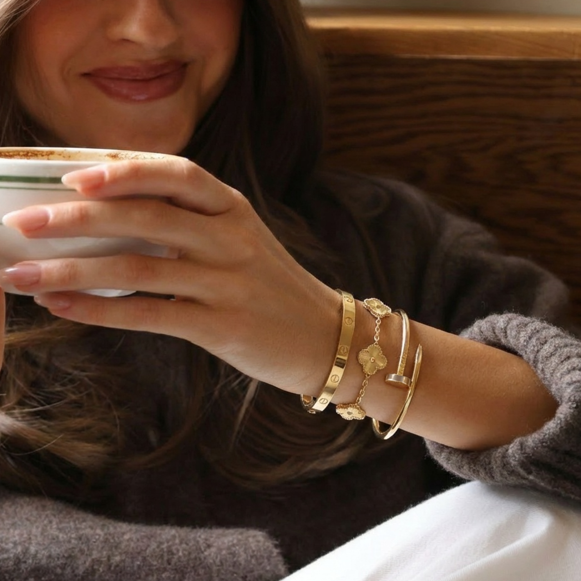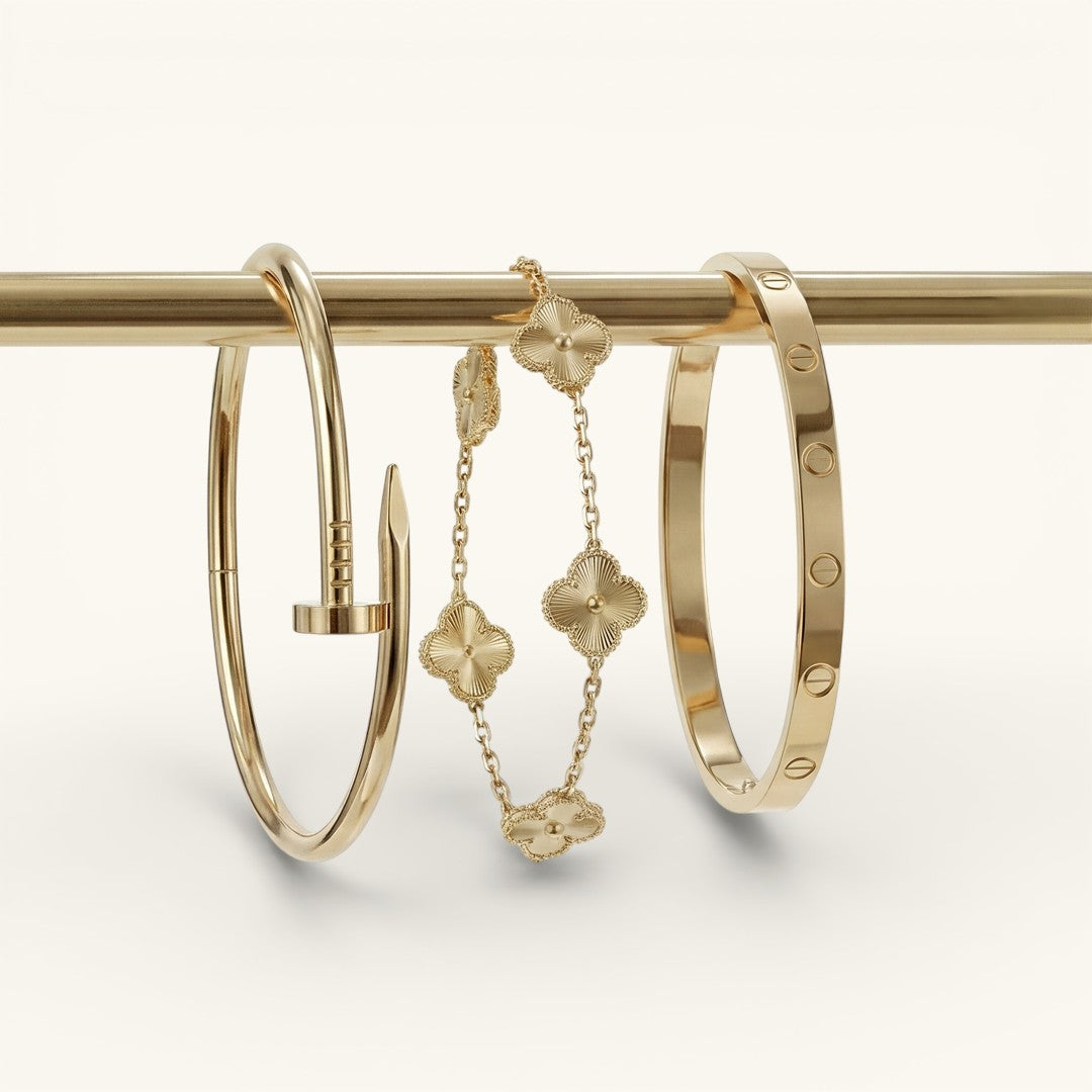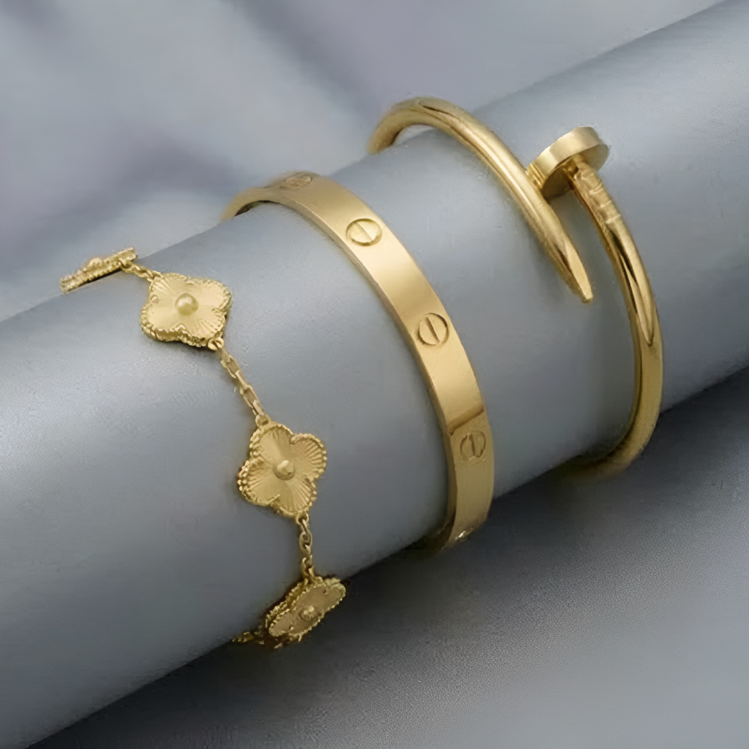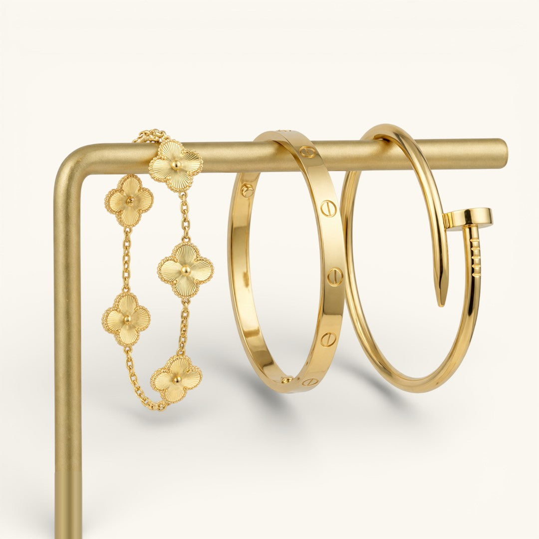 18k gold plating on surgical steel. Engineered to stay brilliant, always.